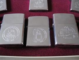 Зажигалки имееют изображения в виде гравировки юбилейных эмблем 5 летия(1932-1937), 10 летия (1932-1942), 25 летия (1932-1957), 40 летия (1932-1972), 50 летия(1932-1982) и 60ти летия компании Zippo (1932-1992).