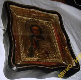 Икона Вседержитель Спас Оклад Киот Позолота рельеф Мелеуз