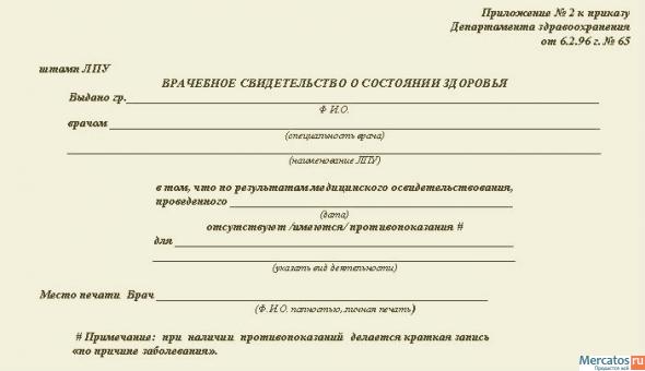 Медицинское свидетельство о состоянии здоровья для занятий в спортивной секции