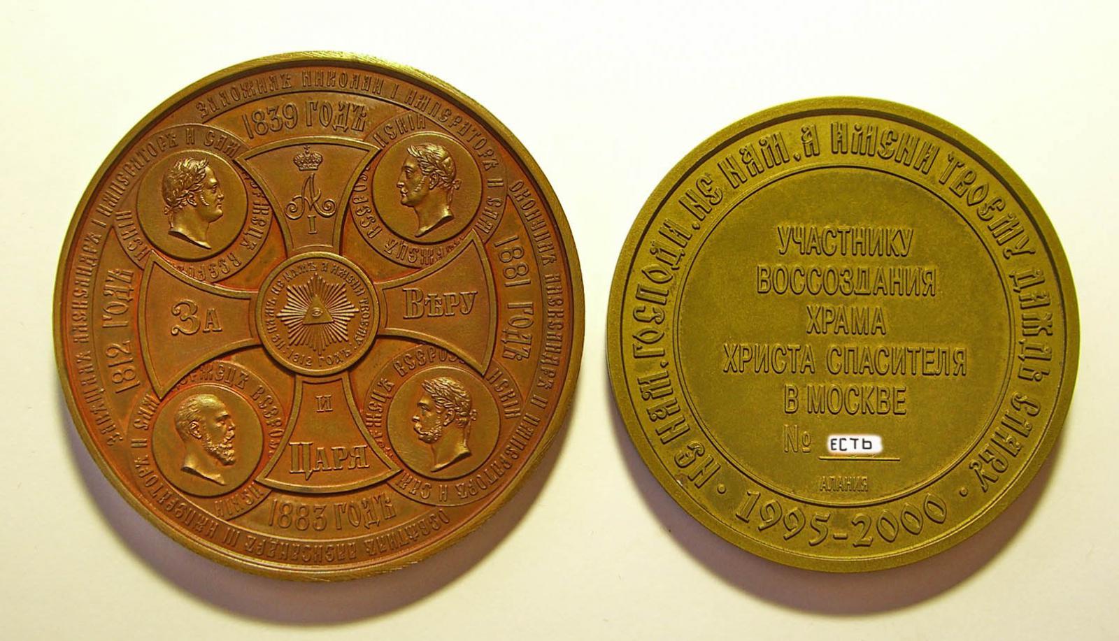 Продаю медали настольные, бронзовые за строительство и освящение Храма Христа Спасителя 1839-1883 года и современного Храма Христа Спасителя 1995-2000 года. Уникальная коллекционная сохранность. Посмотрите и другой антиквариат различной тематики на моём сайте - Скопируйте и вставьте в браузер ссылку сайта :
