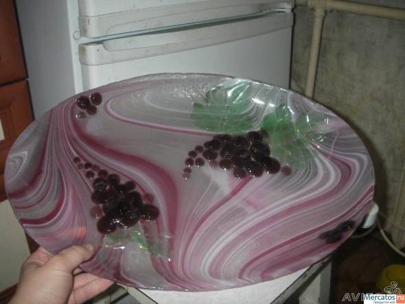 Изделия из стекла ручной работы. Прекрасный подарок на любое торжество. Блюдо-поднос 2000 руб, тарелка-фруктница 1500, Тарелка-мозаика 700, тарелка-лист 400, подсвечники по 650, перо - 150 руб.