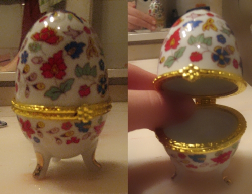 Маленькое подарочное яйцо-шкатулка (для колечек и тд), в подарочной коробочке.