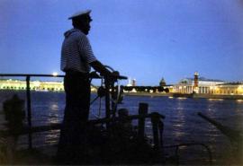 Отплываем. Движемся вверх по Неве, разворачиваемся напротив Смольного. Проходим Аврору, стреляем по ней до ответных выстрелов. Обходим Крестовский и Елагин острова. Демонтируем верхнюю часть и проходим по живописным зелёным местам под узкими и низкими мостами. В мангале на шампурах шипят куски мяса. Выгружаемся на Кировском стадионе, наблюдаем Финский залив, ловим на удочку 3 - 6 форелей. Их потрошат, набивают травой и заворачивают в фольгу. Мы её выпекаем на углях в мангале (с корочкой!). На месте стоянки проходит трасса кольцевых гонок "Невское кольцо". Тех пассажиров, которых захватил вид ревущих машин, насильно затаскиваем на корабль. На берегу строим фигуру, и перед отплытием расстреливаем её. Топится сауна. Мы движемся по Петровскому фарватеру навстречу чистой воде. Уходим с фарватера, ложимся в дрейф. Прыгаем с корабля, купаемся, паримся в сауне. Делаем круг. Топится самовар. Пьём чай, кофе, портим фигуру сдобой и пирожными.