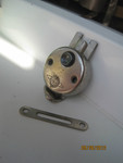 Защелка, комплект, полуавтомат, из 198-х. Открывается рычажком а закрывается - одним нажатием черной кнопки - пружина сама закрывает запирающий механизм