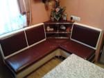 | Диван угловой кухонный, стиль модерн, производство – Россия, изготовлен в декабре 2011 г., обивка – гуанил бордово – кремового цвета, габариты: 160х120х45х56(82)см, новый, в отличном состоянии |