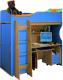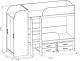 | Модель состоит из кровати, шкафа, компьютерного стола с ящиками и лестницы.