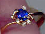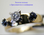 | Золотой перстень с жёлтым и синими бриллиантами.