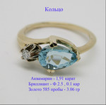 | Золотое кольцо с Аквамарином и Бриллиантом.