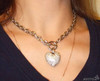 | Оригинальное итальянское украшение в виде сердца на цепочке.Сердце двухстороннее,одна сторона - выложена кристаллами Сваровски,другая - резной металл. Длина цепи - 44 см. |