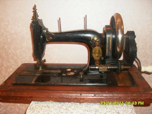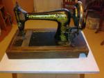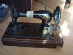 | Старинная немецкая ручная швейная машинка,конец 19 начало 20 века.В рабочем состоянии,с деревянным футляром.Серийный номер-2622508. |