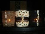 | подсвечники "кружево", материал - стекло, кружево, атласная лента, бисер |
