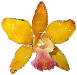 | Роскошная брошь сделана из орхидеи вида Каттлея, обрамленной золотом. Эффектный цветок удачно подчеркнет Ваш... |