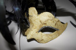 | Маска сверху отделана очень красивым кружевом с золотой нитью. Украшена стразами. Завязывается на атласные ленточки. |