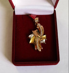 | Красивый золотой кулон 750 пробы, с напылением белого, красного и желтого золота. (4х3см)
