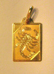 Красивая подвеска-пластина с изображением Скорпиона из жёлтого золота.