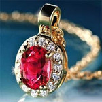 | Серебрянная подвеска со вставкой камня РУБИН размером 7*5 мм в обрамлении искуственных бриллиантов. |