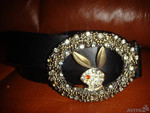 | Широкий ремень из джинсовой ткани с бахромой по краям. С большой круглой пряжкой (ремень в пряжку просто продевается,... |