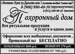 | Памятники, венки, корзины, букеты, оградки, столы, скамейки, гробы, одежда, вся ритуальная продукция и услуги в одном доме. |