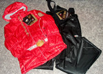 Розовая куртка, серые штаны, на карманах стразы. Есть в голубом цвете с черными штанами. Размеры: все |